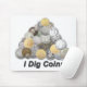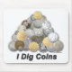 Uma pirâmide das moedas velhas escavadas indicadas com as palavras: Eu escavo moedas