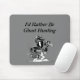 Eu preferencialmente seria tapete do rato da caça do fantasma: um caçador engraçado do fantasma dos desenhos animados feito no preto, cinzento e no branco enganou para fora com a engrenagem do caçador do fantasma, a câmera, equipamento audio da câmara de vídeo, fones de ouvido, etc. com as palavras que eu preferencialmente seria caça do fantasma no preto acima dele.