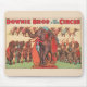 Vintage Downie Brothers poster de circo mostrando elefantes com mulheres e treinadores pendurados na cabeça da boca do elefante.