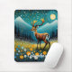 Veado bonito parado em um campo floral com montanha e pinheiros à noite. Personalize-o alterando o nome.