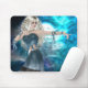 Céu azul etéreo - Lua cheio brilhando através das nuvens - Bela deusa Lua loira, Sky Siren apontando para seu belo carregando de pomba branca um rosa solteiro