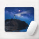 Esta incrível foto do Getty Images apresenta um farol em uma ilha no meio do mar à noite com muitas estrelas e a Via Látea.