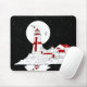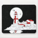 Uma ilustração do Farol de Cabeça Quoddy Este, também conhecido como Lightstation de Cabeça Harbor. Isto é na ilha de Campobello, New Brunswick Canada. O farol é desenhado em preto e branco sob uma lua de cheio, que reflete no período oceânico que a única cor vem das marcas distintivas vermelhas no farol e nos telhados dos prédios.