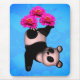 Mousepad Fazendo Malabarismo Com O Urso Panda E Flores Rosa