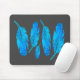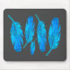 design de penas azuis bonito de cor azul de madeira contra fundo de cinza escuro. Belo design azul profundo com uma vibração.