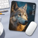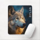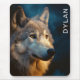 Legal cobertura de rato com um lobo perto do nascer do sol, céu noturno ao fundo. Isso pode ser personalizado com um nome/texto personalizado no lado direito.