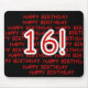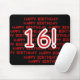 16o design feliz preto, vermelho, e branco do aniversário em 16os t-shirt do aniversário, em cartões, em canecas, em botões, e em outros 16os artigos do aniversário.
