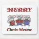 Três ratos de Natal cinzas e texto que diz "Feliz Chris-Mouse" em T-shirts de Natal, casacos, camisas de suor, canecas, cartões, autocolantes, sacos de tote e outras roupas e presentes de Natal.