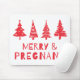 Design de Natal com algumas árvores de Natal e a citação "Feliz e grávida". Perfeito como anúncio ou revelação de gênero no Natal para cada futura mãe e pai.