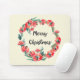Mousepad Feliz Natal Red Floral Watercolor Wreath