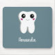 Mousepadcom um desenho de um grande dente branco com um sorriso kawaii fofo e grandes olhos felizes.