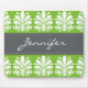 Procurando um presente especial para um amigo, membro da família ou colega de trabalho? Esta adorável design feminina apresenta uma carapaça branca e úmida motif florescente contra um fundo brilhante primavera verde. Com fita de cinza de carvão e monograma, ele está pronto para personalizar com seu nome ou monograma. Se você preferir o item sem o monograma, esses elementos de design poderão ser removidos.