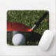 Golf o ferro e uma bola de golfe em um fairway do golfe.