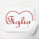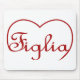 A palavra italiana para filha é figlia. Feito em vermelho e com o dentro de cima de um coração.