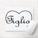 A palavra italiana para Filha é Figlia. Feito em roteiros pretos e em dentro do topo de um coração.
