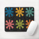Este mouse pad tem um Médio de estrelas modernas do século design em cores retrorativas em um campo de preto.