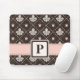 Um tapete do rato cor-de-rosa e marrom monogrammed bonito da flor de lis pode ser personalizado e personalizado com sua inicial do monograma. © Chrissy H. Estúdio do design, LLC. Todos os direitos reservados.