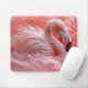 O mouse pad é mostrado com uma impressão de foto de um belo flamingo. Personalize este item ou comprar como está. Imagem do stock