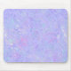 Um design lindo de flocos cor-de-rosa, roxo e turquesa metálicos sobre fundo roxo.