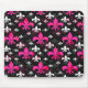 Lily Flower Fleur De Lis Francês Estilizado, Cor-De-Rosa E Branco, Estilizada, Na Fade Refletir O Padrão De Fundo Preto Design