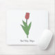 Uma pastilha de rato com uma ilustração botânica da flor vermelha em cores pastel e um texto personalizável no fundo: uma boa ideia de presente para uma garota que ama flores. Tulipa é a flor de nascimento de abril, a flor de Aries e é significados simbólicos de amor perfeito e profundo.