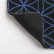 A flor do símbolo da vida em um teste padrão da repetição no detalhe azul em um fundo preto.