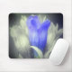 Delicar a flor pálida azul-genciana em flor de cheio feita em velhice e vintage, parecendo preto, branco e parcial com foco suave. Fotografia de Susan.