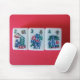 3 azulejos de Mah-Jongg da flor em um fundo vermelho fazem para um tapete do rato bonito do divertimento. Você pode adicionar-lhe um provérbio como well- como a rainha Mah-Jongg.