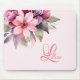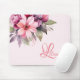Flores cor-de-rosa e rosa no mouse pad, personalizadas com seu nome.