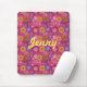 Linda pastilha de rato Pink Floral Patterned é um cheio floral de cores como rosa e amarelos e contém flores como girassóis, conflituosos e papoilas
