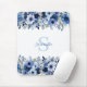 Pasta de mouse floral azul personalizada. Fácil de mudar o texto. Perfeito para escola ou escritório.