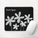 Mousepad Flores bonito - Branco sobre Preto