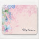 Pad personalizado de mouse com uma imagem de aquarela bonito com flores curvas cor-de-rosa e azuis.