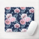 Mousepad Flores brancas e cor-de-rosa em azul escuro.