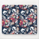 Mousepad Flores brancas e vermelhas em azul.