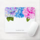 Esta é uma pintura aquosa de flores de hydrangea. Existem em cores diferentes - azul, rosa e roxo.