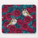 Mousepad Flores de rosa vermelha e aves-pintadas