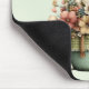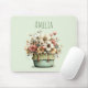 Mouse pad com um vaso de flores estiloso e caprichoso. Cores verde, rosa e creme. Colocado em um vaso verde com um pano xadrez. Estilo rústico vintage.