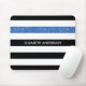 Personalize este moderno e horizontal padrão de listras preto e branco com uma faixa azul de brilho, adicionando o nome de qualquer menina feminina. Este padrão gráfico de tendência é perfeito para a moda chic. Imagem impressa plana, NÃO brilho real.