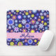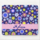 Este é um padrão bonito de flores margaridas do estilo retro-arte em rosa, amarelo e azul sobre um fundo azul marinho. Assim como nos anos 70, um padrão estranho para meninas que amam designs retrorreflectores. Este mouse pad é fácil de personalizar com qualquer nome.