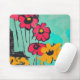 Flores vermelhas e amarelas contemporâneas pintadas sobre fundo verde texturizado com preto
