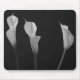 Elegante, a vida de Calla Lily. A foto em preto e branco das flores é simplesmente uma bela fotografia. O fundo escuro por trás da líbia traz a beleza no arranjo floral. Esta é uma fotografia floral de excelente para um design de mouse pad.
