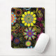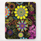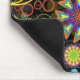 Flores retrógradas coloridas e espirais em fundo preto. Veja mais designs de mousepad do ArtOnWear.
