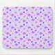 Padrão de flores roxas divertidas com corações azuis brilhantes sobre fundo roxo lavanda. A cor de fundo pode ser alterada.
