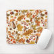 Padrão de outono pintado à mão com várias folhas autóctones, bagas, bolotas, aves e cogumelos