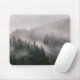 Esta foto caracteriza uma floresta nas montanhas cobertas na névoa e na névoa.