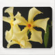 Star Jasmine Flower - flor amarela Solteiro da estrela da trepadeira de jasmim (trachelospernum jasminoides) com folhas verdes e folhagem fotografada contra fundo preto. © Alan Harman Fotografia 2013. Todos os direitos reservados. www.alanharmanphotography.com 120518 mousepad