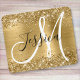 O brilho do ouro brilhante cintilante é feito a cinzas, em destaque nos bordos superior e inferior, sobre uma folha de papel fotovoltaica de metal vermelho-ouro ou de aço inoxidável. O monograma apresenta uma elegante combinação de caligrafia branca e preta. Personalize os estilos de fonte para criar seu próprio design. As cores principais são amarelo-ouro, ouro, preto e branco.