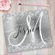 Mousepad Folha prateada com brilho Monograma preto e branco