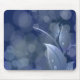 Azul é a cor - fundo bokeh com folhas prateadas e azuis que têm gotas de orvalho ainda sobre elas a partir da névoa noturna